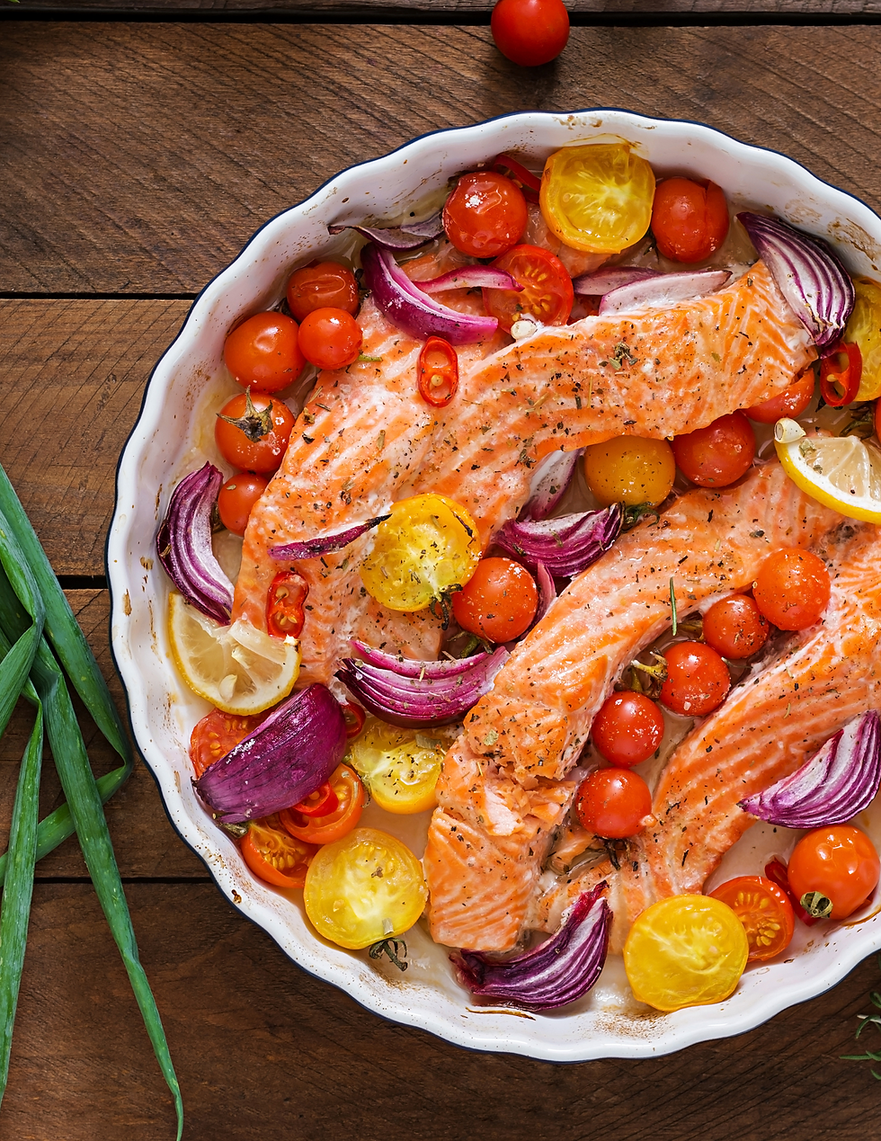 Succulent salmon fillets marinated in a blend of fresh herbs and zesty lemon, grilled to perfection. This dish provides a rich source of omega-3 fatty acids.